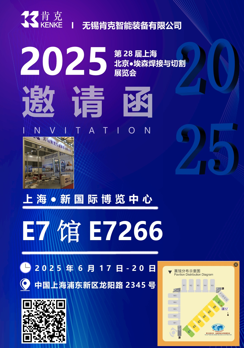 無錫肯克智能裝備將于2025年6月17-20日參加在上海新國(guó)際博覽中心舉辦的第28屆北京埃森焊接與切割展覽會(huì),歡迎新老顧客蒞臨我司展位,我司展位位于E7館,展位號(hào)E7266。